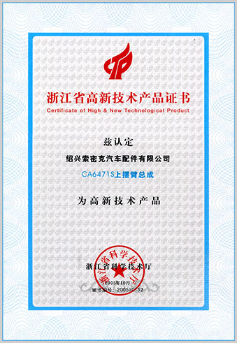 公司已先后通過IATF16949質(zhì)量管理體系認證、ISO/14001環(huán)境管理體系認證和OHSAS18001職業(yè)健康安全管理體系認證。是“國家高新技術企業(yè)”“行業(yè)龍頭企業(yè)”和“全國百家優(yōu)秀汽車零部件供應商”。